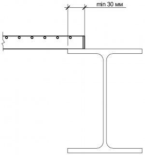 - Рекомендуемое минимальное опирание края настила должно быть равно высоте несущей полосы, но не менее 30 мм.