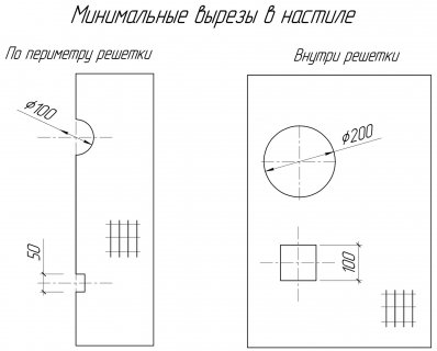 - Минимальные вырезы в настиле.